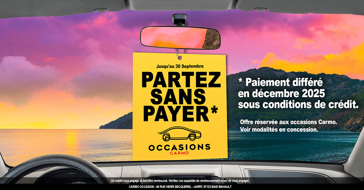 Occasions CARMO, le spécialiste de la vente de voitures d'occasion en Guadeloupe. Un vaste de choix de véhicules d'occasion multi-marques. Plusieurs marques disponibles: Toyota, Citroen, Ford, Iveco, Peugeot, Volkswagen, Lexus, etc. Situé à Jarry, rue Henri Becquerel à Baie Mahault.